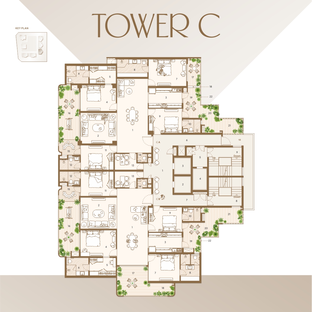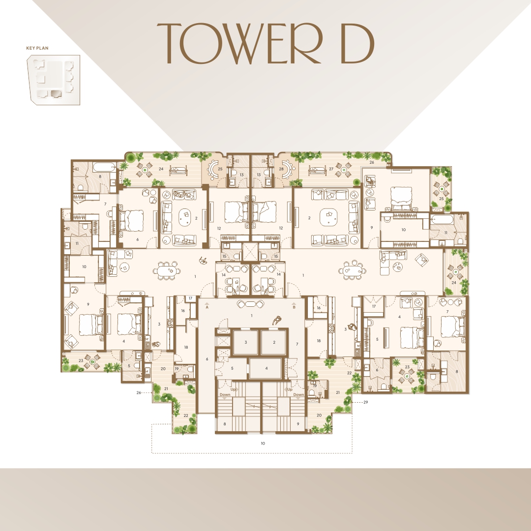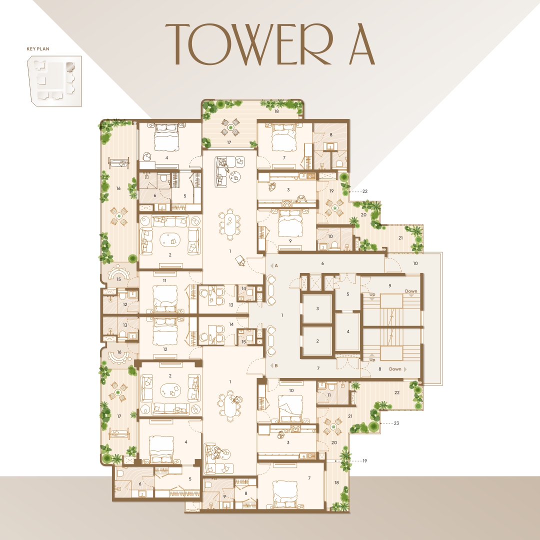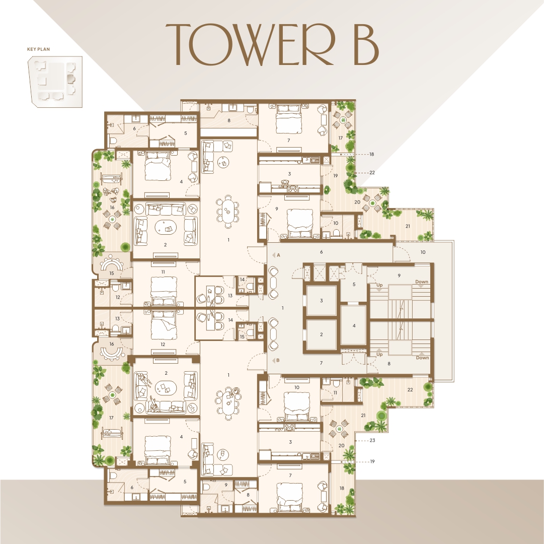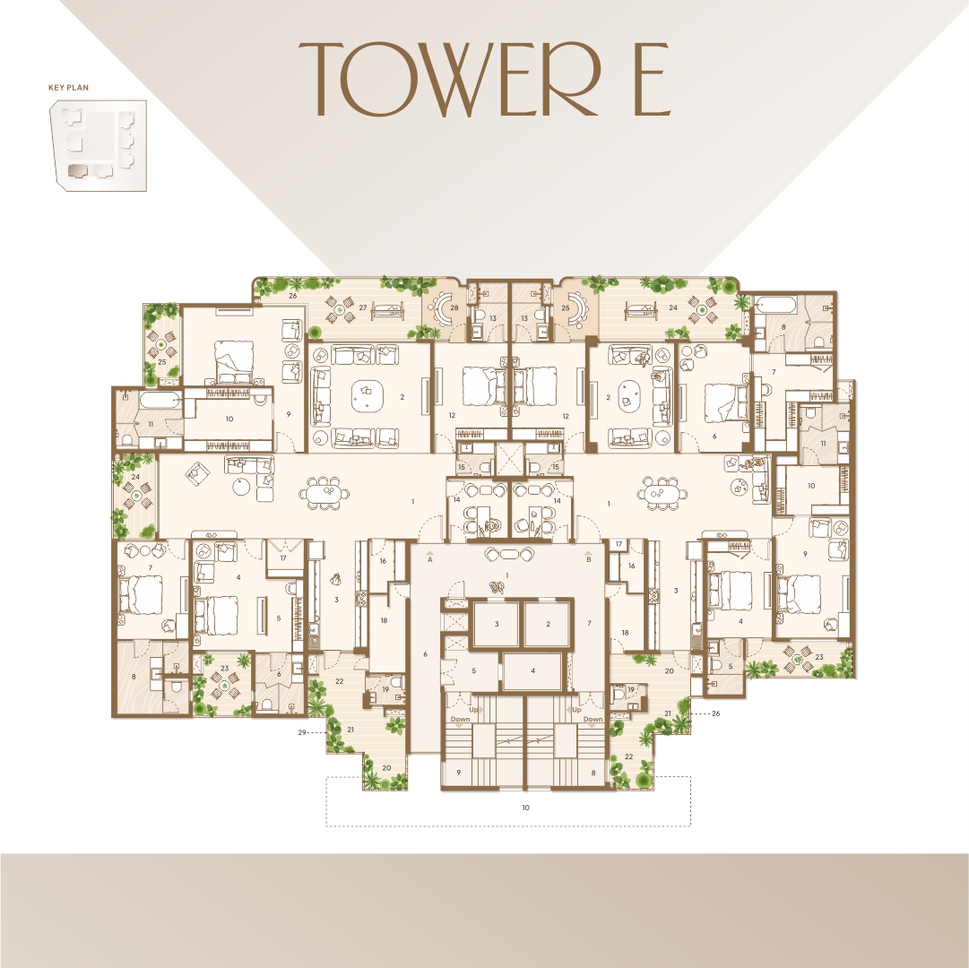 Welcome to a meticulously planned tower layout that blends comfort, functionality, and elegance. Each unit—crafted with precision—ensures maximum space utilization, natural light, and ventilation. With premium 3 & 4-bedroom apartments in Units A and B, our floor plan emphasizes privacy, ease of access, and modern aesthetics. From expansive balconies and open kitchens to dedicated utility spaces and well-appointed lobbies, every detail reflects our commitment to providing a refined living experience. Whether you’re relaxing in your spacious drawing room or enjoying serene views from your private balcony, this layout is designed to elevate your lifestyle.
